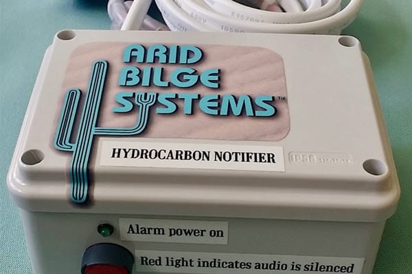 Simple, inexpensive device to alert captains to dangerous hydrocarbon accumulations in bilge water. The Hydrocarbon Notifier alarm sounds off (push-button can silence alarm, but stays lit) when a pre-determined amount of oil or fuel is detected in the Oil